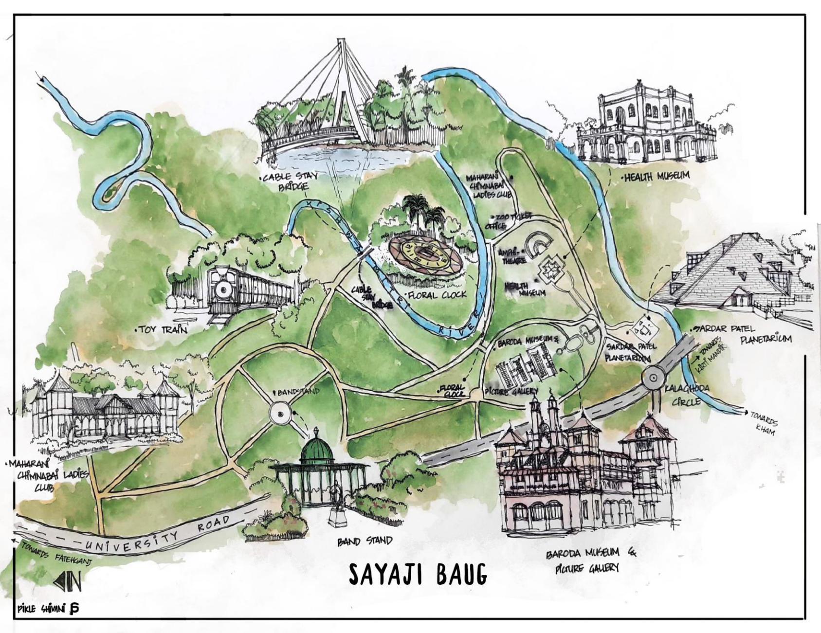 Baroda State was considered one of the most progressive states and the credit for this goes to the vision and foresight of one of its most iconic rulers, H.H. Maharaja Sayajirao Gaekwad Ill. The noteworthy development in the diverse fields of education, judicial, agricultural and socio-economic reforms laid the foundation for the modernization of the city. Being a Maratha ruler of a Gujarati state, Sayajirao Gaekwad Ill made several efforts to build a vibrant and cosmopolitan population. Engaging communities, educating and exposing them to the best facilities and faculties available, was part of Gaekwad’s manifesto. Apart from promoting education by the means of establishing schools and institutions, the Maharaja also understood the importance of cultural education, which was meant to reflect not only upon one’s own culture but to learn and appreciate the culture of others. The creation of a public space like Kamati Baug, to promote cultural education is proof of this ruler’s incredible ability to assimilate and adapt various elements to create a unique combination of form and ideas for the benefit of his people.