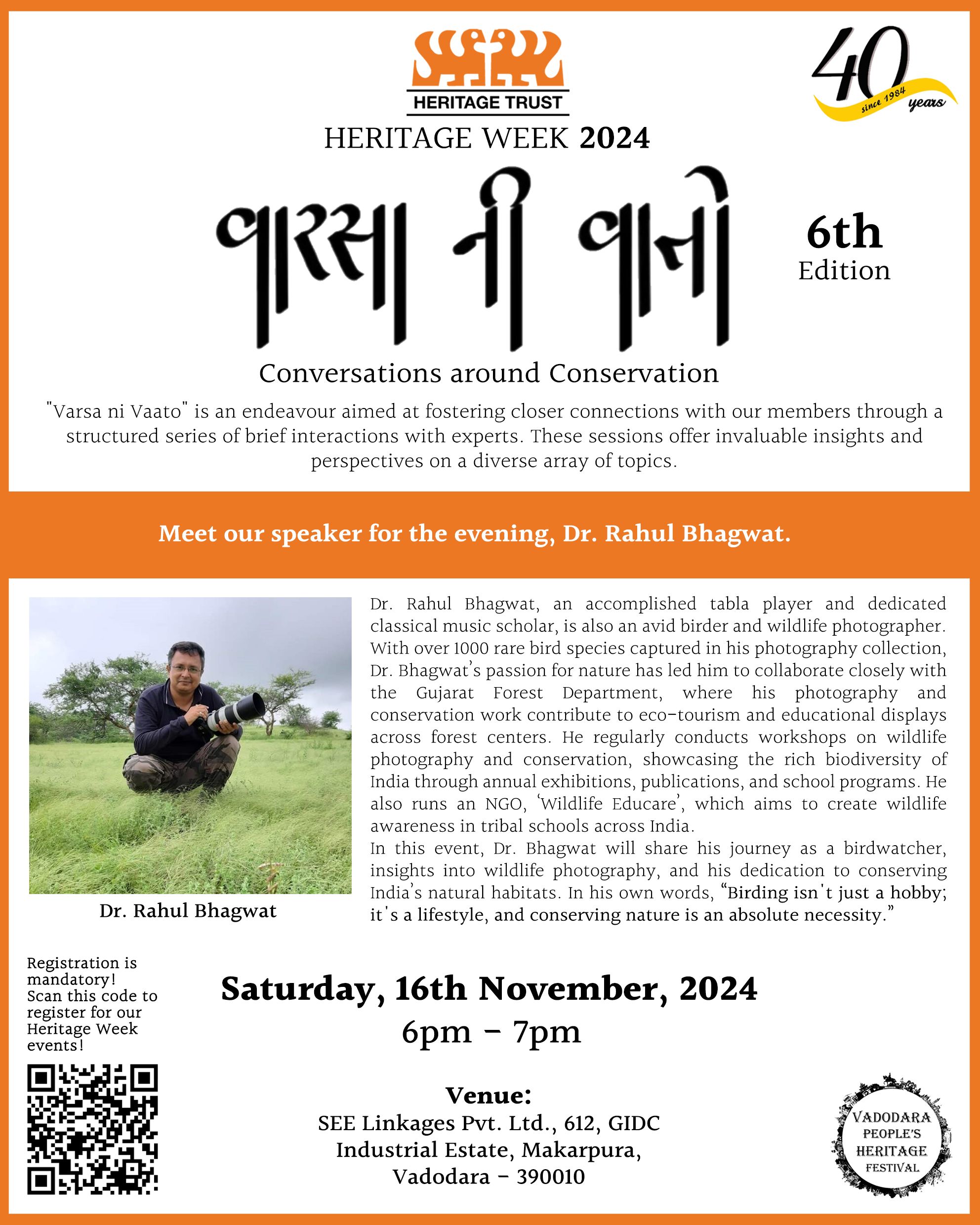 FGI Auditorium FGI (Federation of Gujarat Industries) Auditorium, Vadodara, Gujarat, IndiaViraasat Lecture on "Heritage Activism in Goa" will be delivered by Ms. Heta Pandit, who has over 25 years of experience in heritage conservation activism. Topic: "Heritage Activism in Goa:…