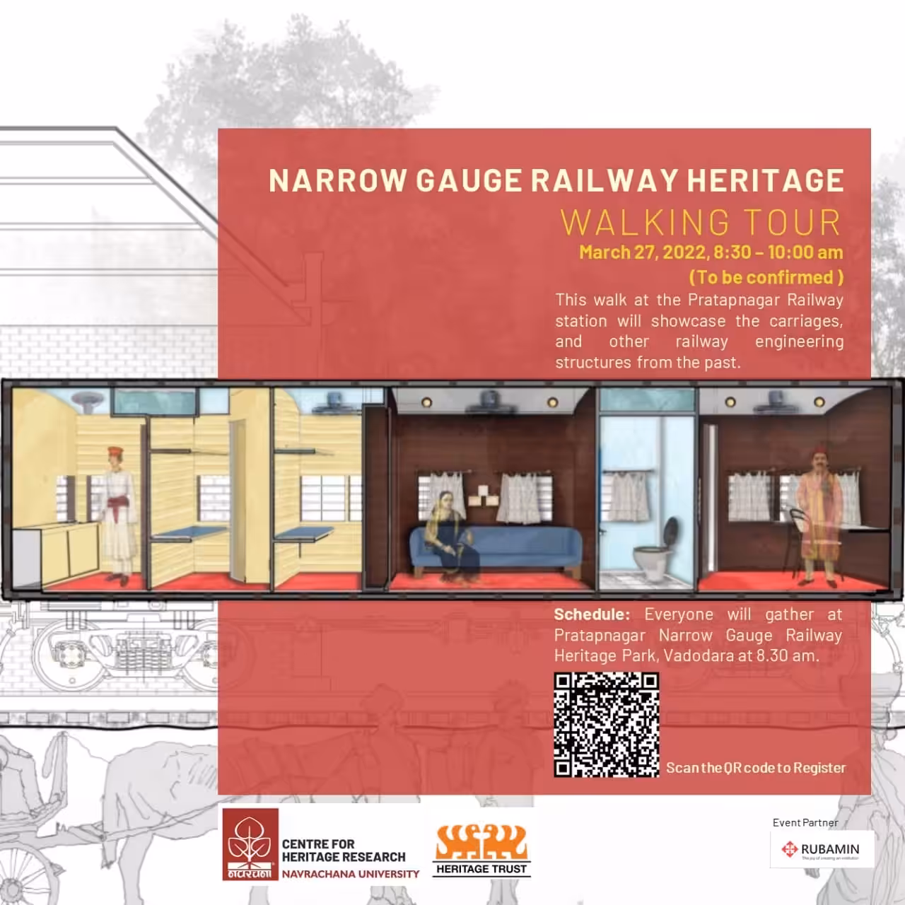 WALKING TOUR March 27, 2022, 8:30 - 10:00 am This walk at the Pratapnagar Railway station will showcase the carriages, and other railway engineering structures...
