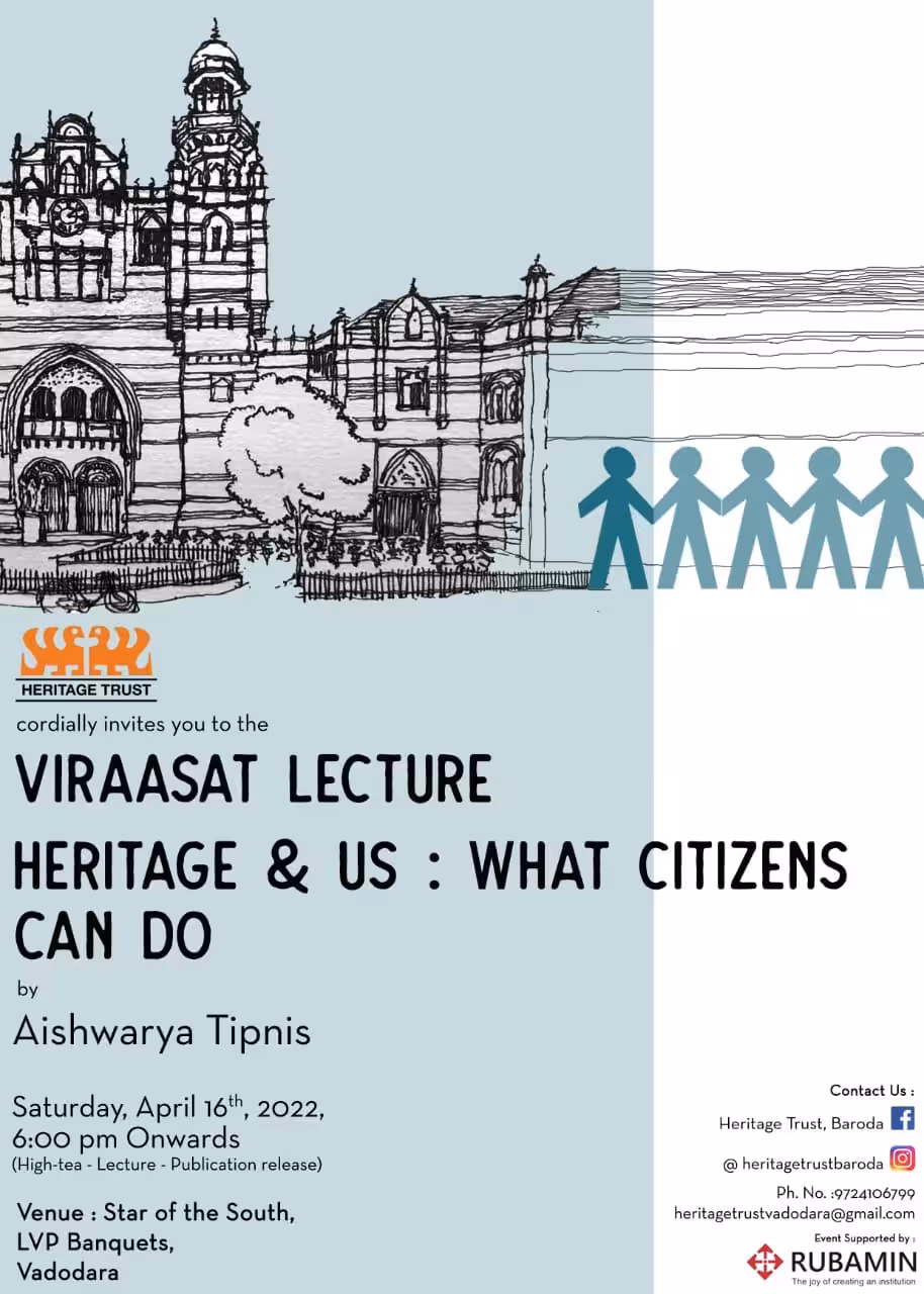 Viraasat Lecture - Heritage & Us - What Citizens can do by Aishwarya Tipnis Saturday, April 16th, 2022, 6:00 pm Onwards (High-tea - Lecture...